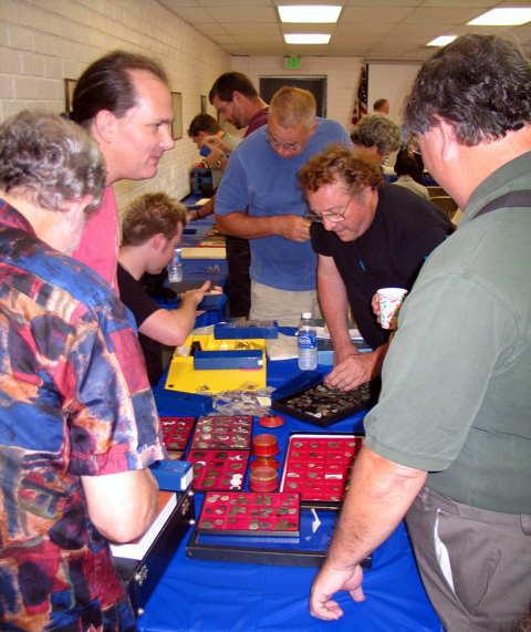 A number of Club members and dealers set up tables to display coins for sale and, long after the meeting, people stayed to inspect their wares and to socialize.